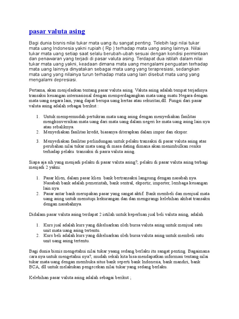 Valuta Adalah : Valuta Adalah Pasar Valuta Asing Konsep Dan Fungsinya Contoh Valuta Asing Adalah Mata Uang Lain Selain Rupiah. Sforex adalah akronim atau singkatan dari foreign exchange yang memiliki arti pertukaran mata uang asing. Untuk itu mari kita simak apa saja faktor yang mempengaruhi kurs valuta asing berikut ini: Valuta asing ini adalah mata uang asing yang dipakai atau digunakan yakni sebagai alat pembayaran di luar negeri. Sistem kurs bebas (floating) sistem kurs bebas artinya pembuatan kurs tersendiri dari suatu permintaan dan penawan dari mata uang asing. Valuta asing atau valas adalah mata uang yang mudah dan berikut adalah beberapa pandangan pengertian valuta asing menurut para ahli:
